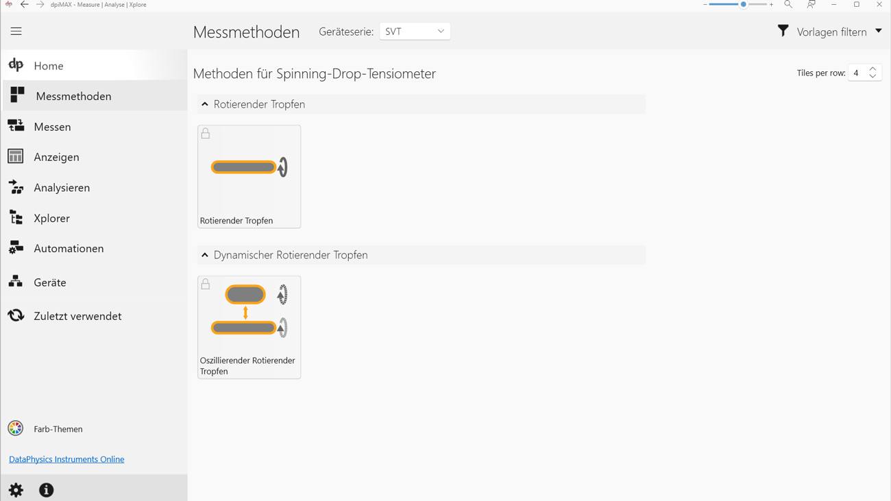 dpiMAX ist die Software für jeden Anwender, ganz unabhängig vom Wissensstand. So können sich Einsteiger ganz einfach durch den Messverlauf führen lassen und bekommen dabei nur die wichtigsten Einstellungen angezeigt. Erfahrene Wissenschaftler hingegen profitieren von der Möglichkeit, viele Parameter für komplexe Messungen selbst einstellen zu können und diese als neue Messvorschrift abzuspeichern.